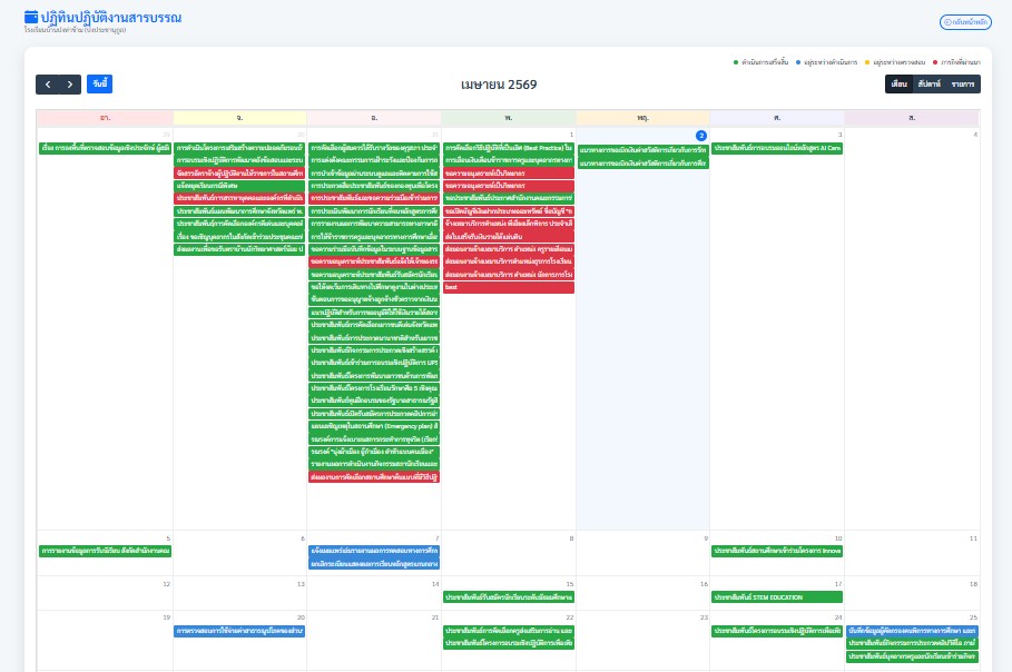 แสดงรายการหนังสือราชการที่ต้องปฏิบัติในวันนั้น ๆ ในรูปแบบปฏิทินโดยอัตโนมัติ และเมื่อคลิกไปยังหัวข้อก็จะแสดงรายละเอียดของหนังสือ