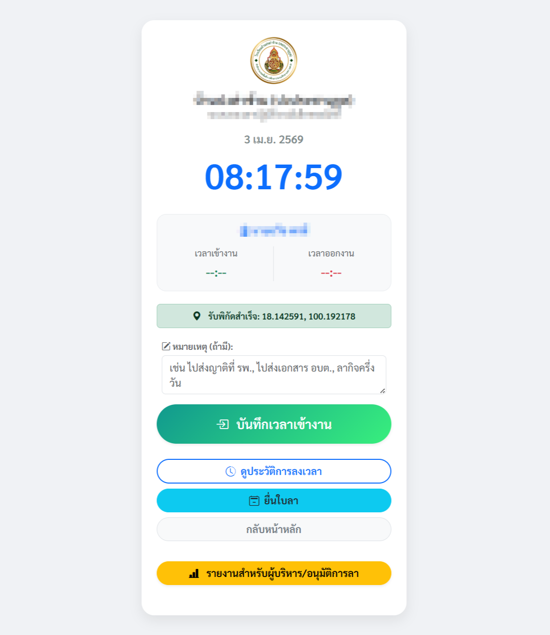 - ลงเวลาและเช็คประวัติการลงเวลาของตนเอง
