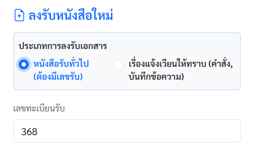 (ระบบจะรันเลขรับให้อัตโนมัติ) หรือ