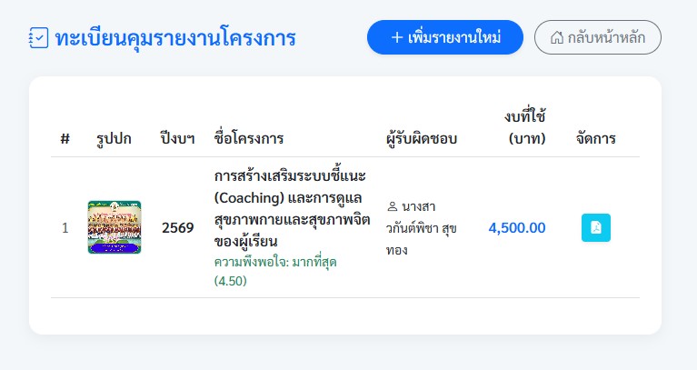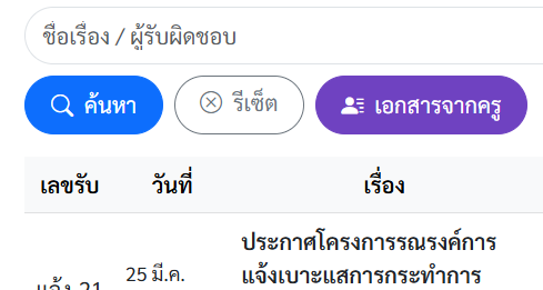 - หนังสือทั้งหมดทุกฉบับทั้งโรงเรียน เลือก "อยู่ระหว่างดำเนินงาน" หรือ "ทั้งหมด" แล้วกด "ค้นหา"