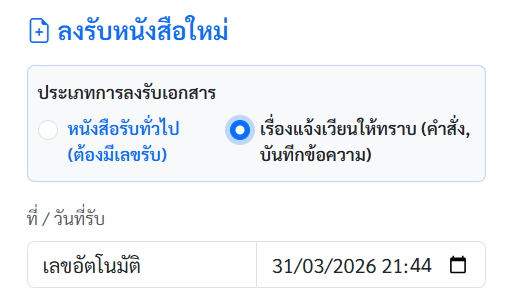 (รันเลขแจ้ง-X อัตโนมัติ) เช่น บันทึกข้อความ, คำสั่ง, หนังสือให้ ผอ.ลงนาม
