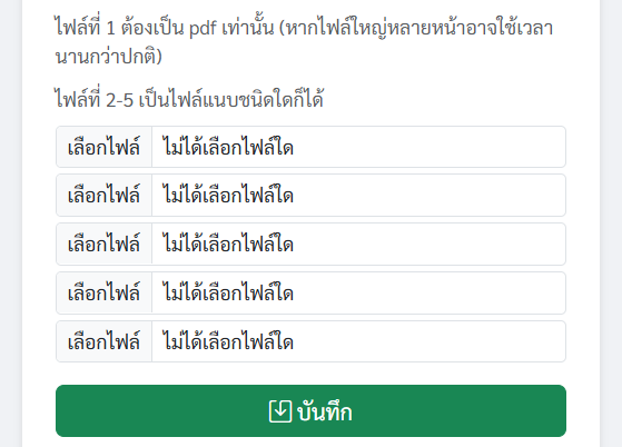 หากมีเอกสารอ้างอิงอื่นๆ สามารถแนบเพิ่มได้ที่ช่องไฟล์ 2-5 (ไฟล์ชนิดใดก็ได้) จากนั้นตรวจสอบความถูกต้องแล้วกดปุ่ม