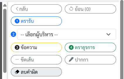 กล่องเครื่องมือด้านขวา ให้ดำเนินการตามลำดับ เช่น 1. ตรารับ - นำไปประทับตราวางมุมขวาด้านบน