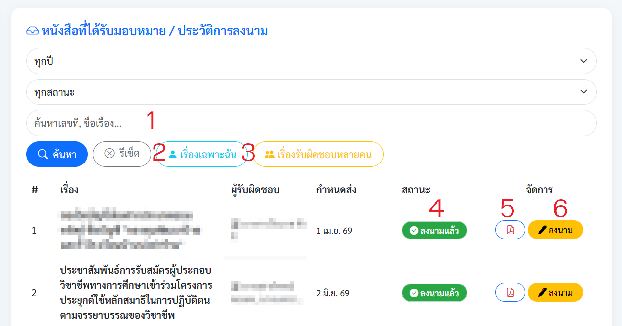 4. ข้อความ = ได้รับมอบหมาย คือยังไม่ได้ลงนาม