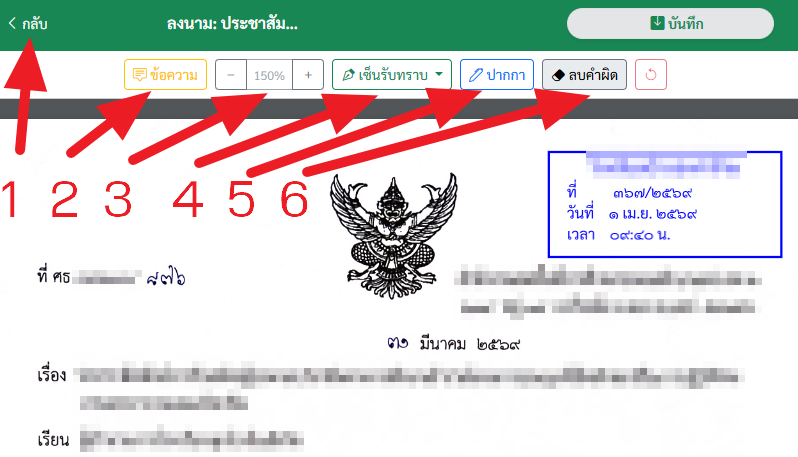 6. เปิดเพื่อลงนาม (เซ็นรับเอกสาร)